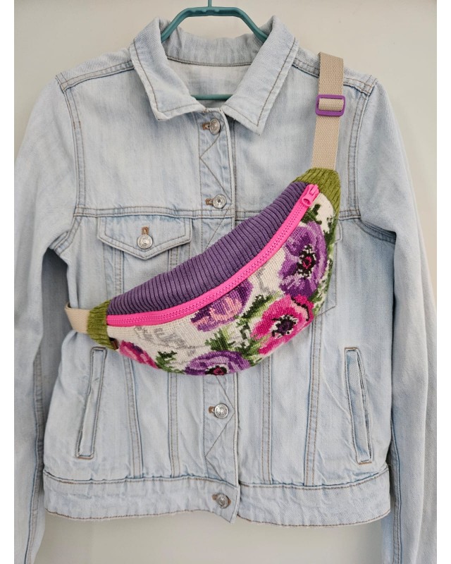 SAC BANANE en canevas ancien recyclé - Modèle UNIQUE