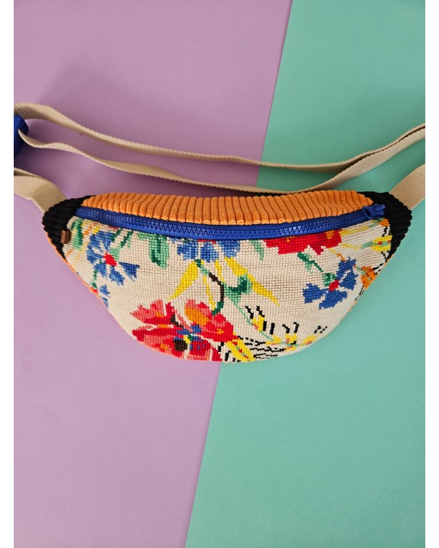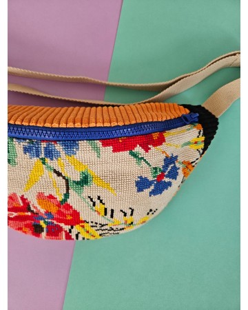SAC BANANE en canevas ancien recyclé - Modèle UNIQUE