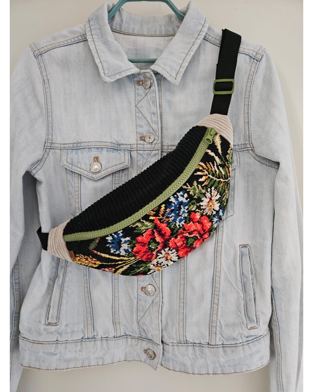 SAC BANANE en canevas ancien recyclé - Modèle UNIQUE